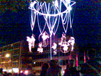 Gestern gab es in Bielefeld das erste Mitternachst-Shopping bis 24 Uhr. Abgesehen von der Möglichkeit, noch mitten in der Nacht einkaufen zu könne (heh ich hab drei Bücher gekauft und wird den Kassenbon gut aufheben) gab es noch eine Aufführung des Himmelstheaters „Maudits Sonnants“. Auch wenn es nur schwer zu erkennen ist – das nebenstehend Bild war zumindest ein Versuch, einen Eindruck davon einzufangen. Allerdings muss man es wohl selbst erlebt haben, wie Artisten in 30 Meter Höhe zu einem lebendigen Glockenspiel werden. Anfangs sehr skeptisch hat es mich doch im weiteren Verlauf doch begeistert.