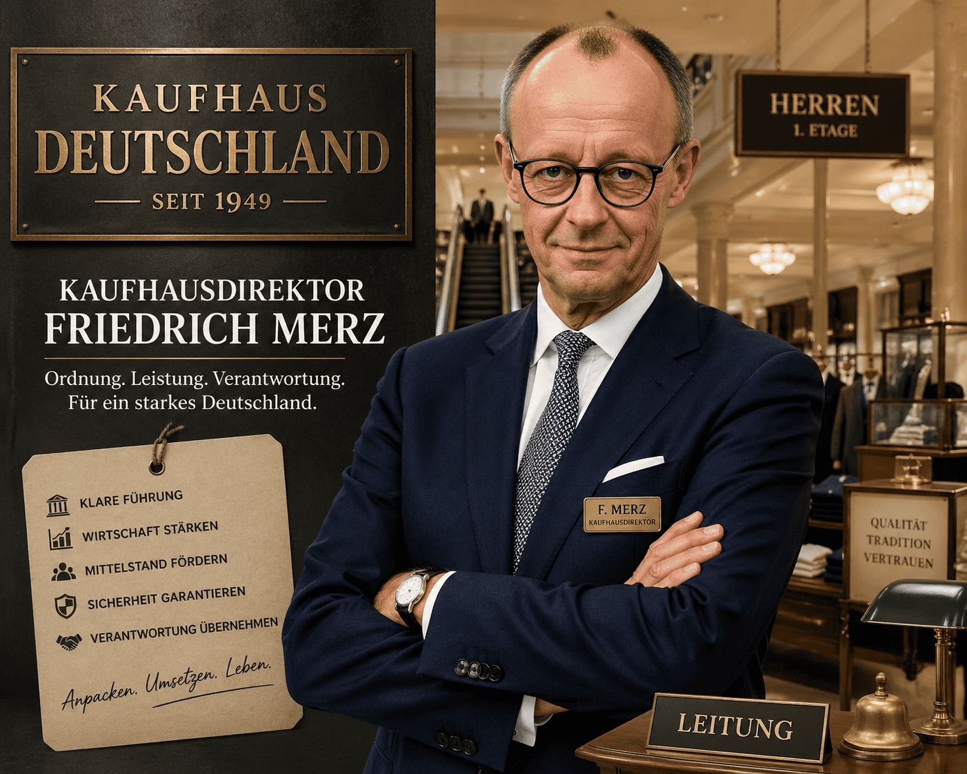 Kaufhausdirektor Friedrich Merz Von der Volkspartei zum Vollsortimenter. Die CDU positioniert sich neu und verwechselt Marktwirtschaft mit Demokratie. Weiterlesen