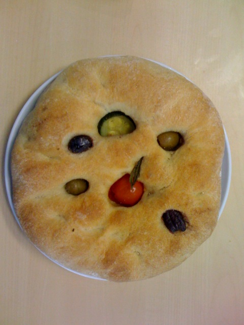 Was ist da eigentlich für eine gewagte Kombination an Früchten drauf? Rosinen, Partykirsche und Oliven? Dem Aussehen nach dürfte viel Weizen drin sein. Wie dem auch sei, Hauptsache es schmeckt.